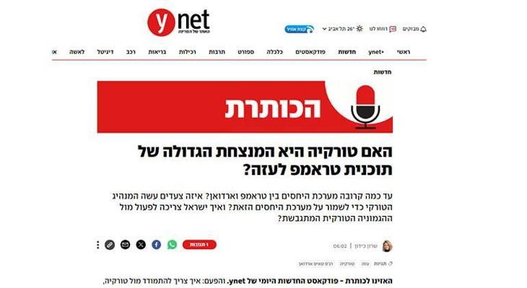 MİLLİYET.COM.TR / İsrail merkezli haber sitesi Ynet, “Türkiye ile nasıl başa çıkmalıyız?” konulu dikkat çekici bir podcast yayımladı. Podcastte eski İsrail Cumhurbaşkanı Şimon Peres’in danışmanı Jonathan Adiri, Türkiye’nin bölgesel yükselişine dair çarpıcı açıklamalarda bulundu.